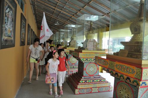 第二天的中学组走进了巴城老街,感受老房子里水乡生活情调。孩子们在临河古镇的石板街上沿街欣赏一个个朱红色底漆金字招牌的铺面——春和面馆,义隆渔行,茶楼,生生堂药店……并在导游的带领下领略了昆石馆、巴城蟹文化博物馆、江南木雕馆等特色景点风光。笛馆里那些竹笛、玉笛、骨笛、弯管笛等上百种笛子更是吸引了无数目光,特别是一支需要几个人抬的号称“天下第一笛”大铜笛让孩子们大开眼界,纷纷拍照留念。在下午的活动中,队员们还参观了航天英雄费俊龙陈列室,学习了红十字知识及急救知识,加深对红十字运动的了解,养成关爱他人、奋发向上的优秀品质。
