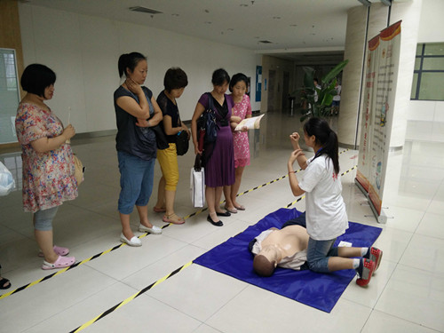 在太仓市红十字会和太仓市第一人民医院的大力支持下,健雄职业技术学院的学生志愿者们利用周末及假期时间,在活动基地为门诊候诊及陪护的群众发放应急救护知识宣传折页、赠送小急救包、演示心肺复苏及包扎技术,指导群众练习操作,充分展现了大学生们良好的精神风貌,在社会上引起了良好的反响。