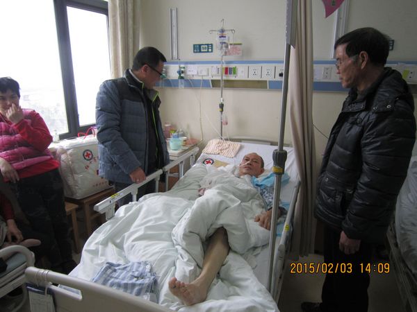 2月3日下午,浏河人民医院红十字志愿者和浏河镇渔村居委会领导一起,前往太仓市第一人民医院住院部探望迎福新村居民沈国凤,代表太仓市红十字会送上慰问金1000元和被子,并询问了家属患者目前病情情况,告知病人和家属要好好配合治疗,能够早日康复回家,出院后浏河人民医院红十字会志愿者会经常上门为病人进行随访和简单的康复指导。(张燕、杨瑞兰)