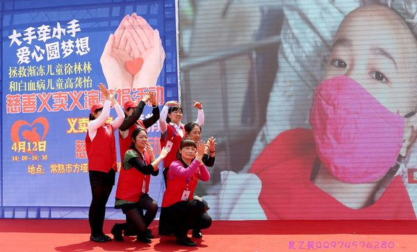 4月12日下午阳光灿烂,常熟市红十字会、流水琴川义工团携手爱心企业,在方塔街街心花园举办了“大手牵小手、爱心圆梦想” 大型慈善义演义卖活动,现场共募集爱心款32005元,这些爱心款将资助该市渐冻症患儿徐林林和白血病儿童高龚怡的治疗。