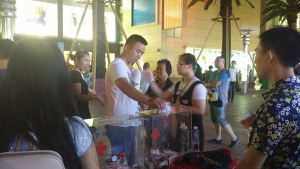 8月8日下午5点,红十字志愿者们来到方塔东街,一场“献爱心,护生命”专项募捐正式开始。当路人得知陈同学的不幸后,纷纷慷慨解囊,献出自己的一份爱心。现场的红十字志愿者以诚相待,以情相染,每一句真挚的劝捐话语,每一次虔诚的弯腰致谢,都让爱心款在红十字募捐箱中越积越多。