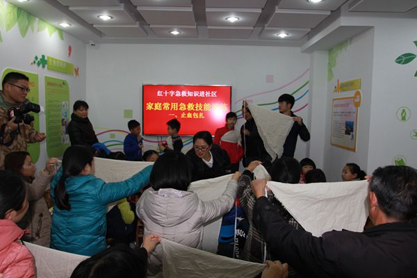 12月13日上午,一场家庭常用急救技能演练在康居新江南社区“博爱驿站”举行,50余名小学生和家长在昆山市红十字会救护培训教师的指导下,学习体验了止血包扎等实用急救方法,这也是“博爱驿站”自投入使用以来的首场亲子救护培训。