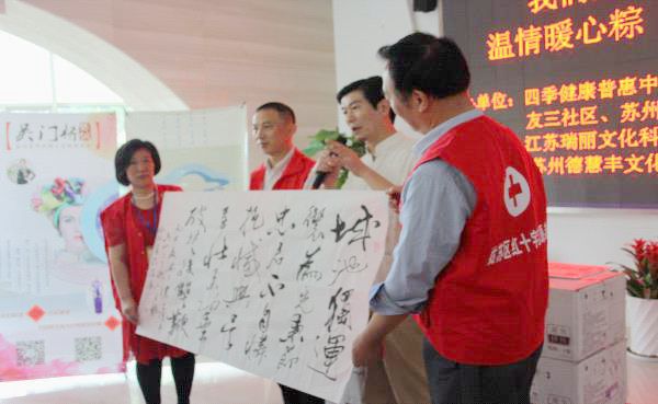 6月6日下午,在端午节来临之际,沧浪新城红十字会携手爱心企业苏州瑞丽文化科技发展有限公司准备了600个爱心粽,发放给四季晶华和友三社区的高龄、重病、困难家庭的居民。