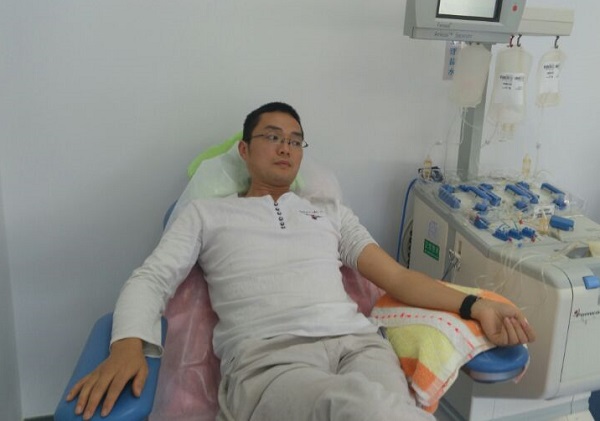志愿者“随风”在周日下午来到常熟市血站,由于他经常参加健身活动,体质好,一下献出了两个治疗量的机采血小板。随风说:“平时忙于做生意,但只要有紧急情况,他一定会信守承诺,来尽一份力,毕竟救人要紧。”常熟市第三届无偿献血爱心使者顾惠明已年届55岁,周日他也响应微信群的号召,献出一个治疗量的机采血小板。事后顾惠明高兴地说:“自己年龄偏大,体检经常不过关,今天能成功捐献感到很高兴。”据了解,这次也是顾惠明第五十次捐献机采血小板,他希望能给年轻人带个头,让应急献血微信群成为常熟市民生命的守护神。(张伟怡)