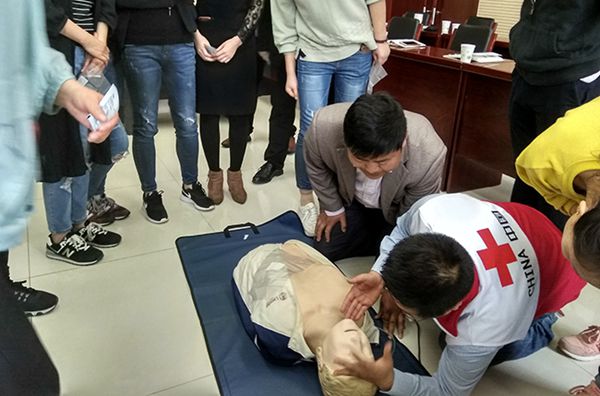 培训分别围绕救护新概念、心肺复苏和创伤救护及意外伤害等,着重给学员们讲解了“第一反应人”、“救命黄金时刻”、“生命链”的内涵和重要性。薛胜通过现场操作,指导学员如何进行心肺复苏,利用安妮模型传授人工呼吸和胸外心脏按压技能,演示了止血、包扎、骨折固定及搬运方法,并指导学员进行演练操作。通过学习,学员们基本掌握了地震、火灾、中毒、触电、溺水、中暑、烧烫伤等意外伤害发生时的救护原则和方法,并顺利通过了心肺复苏操作和理论考试。