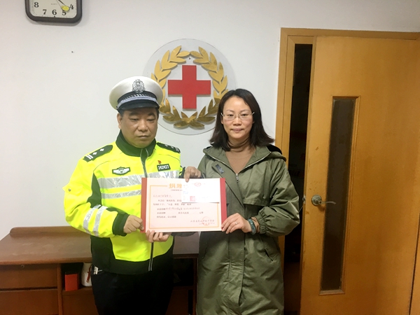 1月28日,昆山市公安交警大队的工作人员代表将82091元捐款交到昆山市红十字会的工作人员手中,用于支援武汉新型冠状病毒感染引发肺炎疫情的防控工作。