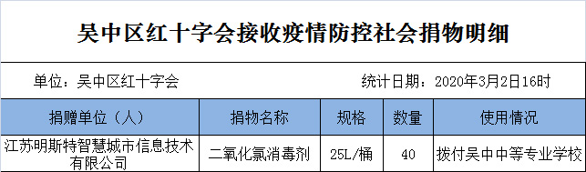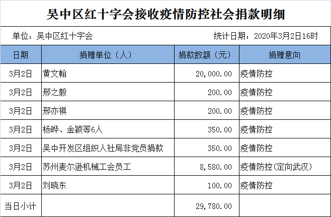 3月2日,吴中区红十字会收到疫情防控捐款29780元,接收捐赠物资1批。