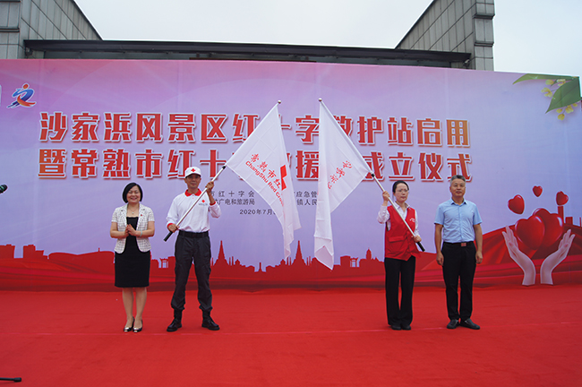 7月9日上午,沙家浜风景区红十字救护站启用暨常熟市红十字救援队成立仪式在风景宜人的沙家浜举行。常熟市人民政府副市长、市红十字会会长张月明,常熟市红十字会、常熟市应急管理局、常熟市文体旅局、沙家浜镇、沙家浜风景区相关领导出席活动。