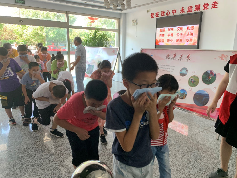 在现场火灾发生后,社工立即组织疏散演练,对疏散线路、注意事项进行详细介绍。演练开始后,青少年们用毛巾捂住口鼻,有序地按指定线路撤离到安全区域。