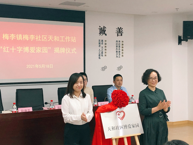 5月18日,常熟市梅李镇天和社区博爱家园正式启用,常熟市红十字会常务副会长陈伟娟、梅李镇政府领导陆瑜雯共同为博爱家园揭牌,并现场赠送红十字急救箱。