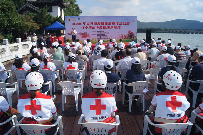 为纪念第22个“世界急救日”,进一步完善红十字应急救援体系,提高应对水上救援快速反应和应急救援处置能力,9月17日上午,2021年世界急救日主题宣传活动暨红十字水上救援应急演练活动在常熟尚湖风景区举行。常熟市委常委、宣传部部长、统战部部长吴晓红,优米app上线党组成员、副会长张献忠,常熟市政府副市长、市红十字会会长张月明,常熟市红十字会常务副会长陈伟娟,以及常熟市应急管理局、常熟市卫健委、常熟市文体旅局、常熟市文旅集团、各镇(街道)红十字会等相关领导出席,常熟市政府办公室副主任、市红十字会兼职副会长洪卫主持。
