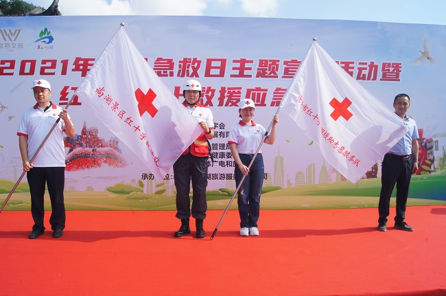 为更好履行职责,进一步完善红十字应急救援体系,提升救援能力,常熟市红十字会组建了红十字心理援助志愿服务队,并会同景区组建了景区红十字救护队。常熟市红十字会秘书长周越峰、赈济救护与捐献服务部部长何建明向两支队伍授旗。