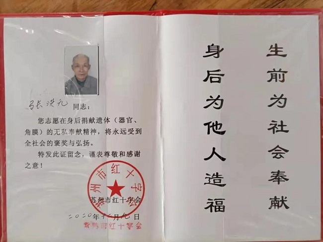 张洪元老先生用实际行动完美阐释“人道、博爱、奉献”的红十字精神,是全社会学习的榜样!他的名字将被永远镌刻在位于苏州上方山遗体捐献志愿者纪念园和常熟思亲苑绿色殡葬纪念园的大理石幕墙上,供后人永久瞻仰、缅怀!