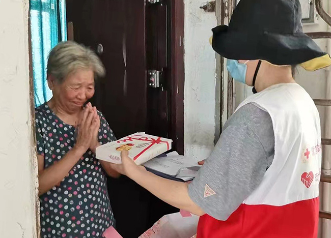 红十字志愿者每月还会组织开展一到两次的走访入户。现在很多老人子女都不在身边、平时的生活略显冷清,志愿者们登门陪老人说说话、唠唠家常,聊聊最近的身体情况、最近爱吃的食物、有意思的事情,老人们就很开心。志愿者们还经常帮助老人进行家政服务,在有限的时间改善老人的生活环境。