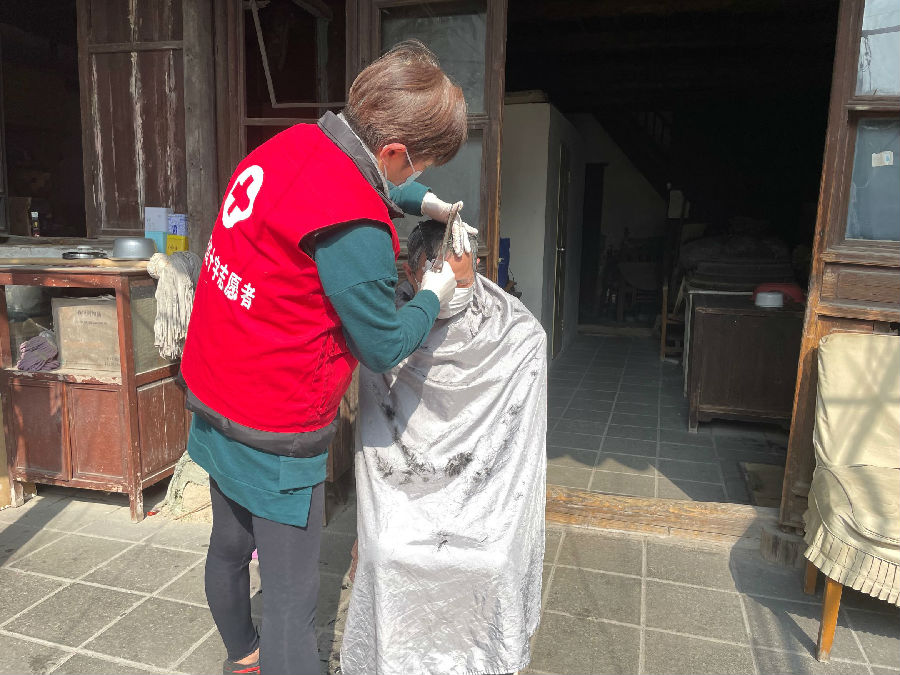 3月3日,姑苏区虎丘街道桐星社区红十字志愿者上门为行动不便的孤老、残疾人义务理发。