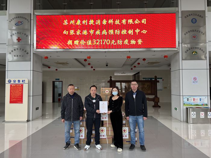 10月26日上午,苏州康利捷消毒科技有限公司向张家港市红十字会捐赠一批价值32170元的防疫物资,专项用于张家港市疾病预防控制中心抗击疫情工作,让奋战疫情一线的工作人员感受到社会温暖,增加一份工作热情。