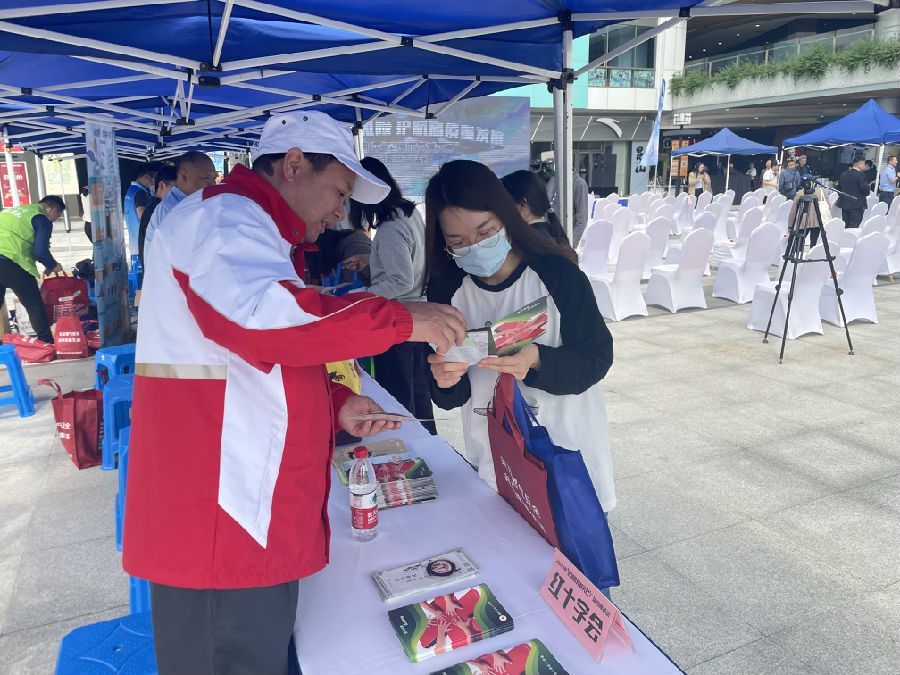 在昆城广场举办的防灾减灾广场宣传活动中,昆山市红十字会通过发放宣传折页、开展现场咨询等形式,向过往群众宣传普及自救互救技能和防灾减灾知识。