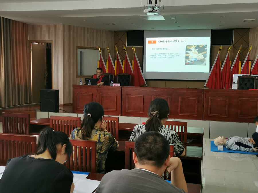 培训会上,老师就常见急症及意外伤害的急救处理和心肺复苏、气道异物梗阻、创伤救护等自救互救知识进行了讲解,并通过生动具体的实例结合现场演示,让大家知道在遇到此类突发状况时如何正确有效地开展应急处置。