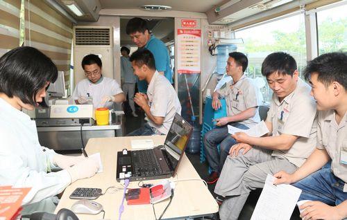 5月23日下午,一辆昆山市血站的流动献血车停在了李氏集团(电子羽电业公司)厂内,车上正有多人在献血,而在外面填表、登记的也排起了长队。