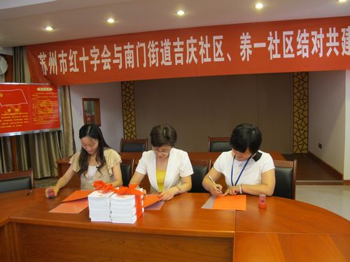 启动仪式上,市红十字会机关党支部副书记王云和养一社区党委书记叶红英和吉庆社区朱毓倩各自介绍了单位基本情况和党组织的工作情况,加深了各方了解。严晓凤代表市红十字会机关和两个社区签订了结对党建协议书,并赠送了宣传材料。