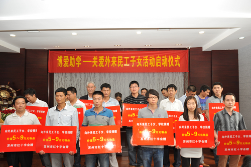 随着苏州经济社会的快速发展,外来务工人员已经成为城市建设的生力军,为苏州率先基本实现现代化作出了积极贡献。为了关心外来务工子女的健康成长,让他们感受到社会大家庭的温暖,市红十字会向平江、金阊、吴中、高新区等四区的16所外来工子弟学校捐赠了总价值约134.5万元的体育用品、夏衣和书包等物品,并将捐赠物品统一运送至各学校。小朋友们拿到崭新的文具盒,背着新书包,十分兴奋,脸上洋溢着幸福的微笑。正如东冉小学的代瑜小朋友所说:“因为爱的力量,我们相聚在一起,社会对我们的关爱,凝聚成浓厚的情谊。我们要努力学习,报效祖国,争做四好少年,同时也要帮助需要帮助的其他人”。