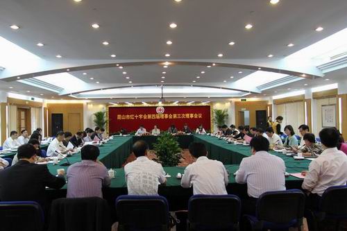 5月4日上午,昆山市红十字会第四届理事会第三次理事会议召开,第四届理事会常务理事及理事参加了会议。昆山市卫生局局长、市红十字会常务副会长陈青林主持会议。