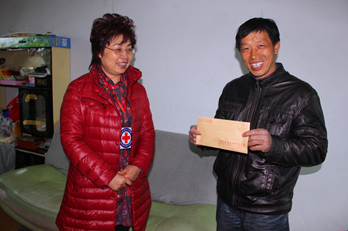 3月22日上午,太仓市红十字会秘书长顾秀英及工作人员一同前往双凤新湖镇,看望身患白血病的16岁花季少女倪章欢,并送去了社会各界爱心人士的捐款3000元。