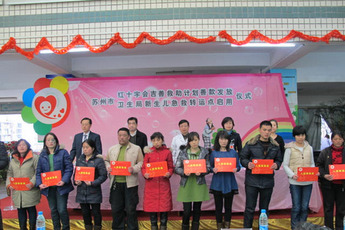 3月14日下午,在苏州大学附属儿童医院怡厅,优米app上线举行“吉善”救助款发放仪式,11名贫困患儿家庭将得到16.5万元的资助。同时,优米app上线捐赠儿童医院车载重症救护系统一套,价值40万元。优米app上线、儿童医院代表和患儿家庭等50余人参加活动。两名市红十字会社会监督员进行了全程监督。