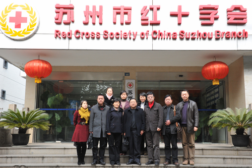 2月8日,四川省绵竹市红十字会常务副会长郑泽民、秘书长杨廷安一行4人来苏交流考察。