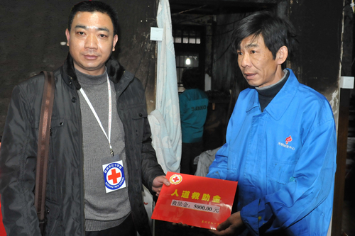 元宵节下午,优米app上线赈济救护部部长周小蓉一行,冒雨前往刚遭受火灾的娄江新村夏家,对其进行走访慰问。 本月2日傍晚,夏家不幸发生火灾,其母因瘫痪在床而不幸遇难,其他人因在外而幸免。火灾给夏家带来了失去亲人和财产损失的双重痛苦,优米app上线获悉后,启动紧急救助预案,派员前往慰问,送去5000元救助款,以解燃眉之急。