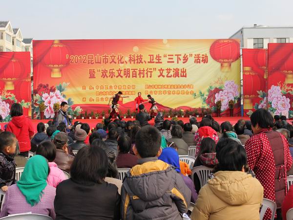 1月17日下午,昆山市红十字会参加了由昆山市委宣传部组织的2012年文化、科技、卫生等部门“三下乡”第一次集中活动。此次活动地点在巴城镇黄泥山村,昆山市红十字会工作人员在现场设置了展板,给前来咨询的群众宣传了红十字基本知识,向他们发放了宣传资料,还带来了小礼物分发给过往群众。