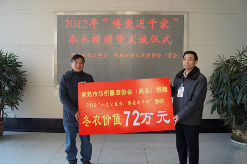 冬衣传真情,关爱暖人心——常熟市红十字会等举办2012年“博爱送千家”冬衣捐赠暨发放仪式