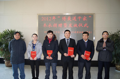 1月17日下午,常熟市红十字会会同常熟市纺织服装协会(商会)在市卫生局一楼大厅举行了2012年“博爱送千家”冬衣捐赠暨发放仪式。常熟市红十字会常务副会长、卫生局局长殷恭,常熟市纺织服装协会(商会)秘书长归无忌以及虞山镇红十字会等4个镇级红十字会的多位领导出席了本次仪式。仪式由常熟市红十字会副会长张伟怡主持。