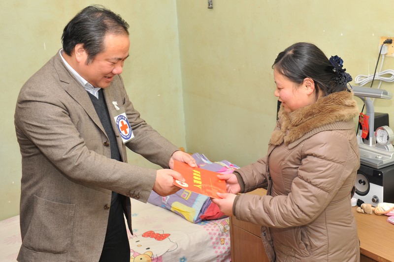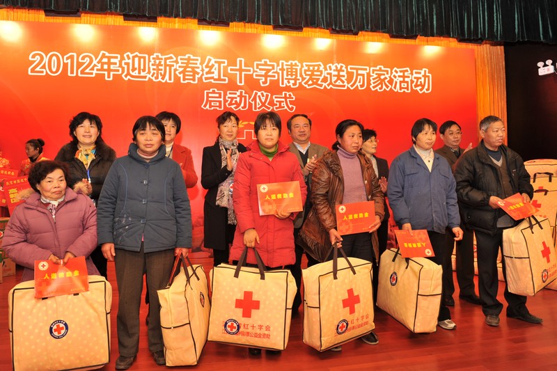 现场向困难群众代表发放慰问金以及米、油、棉被等慰问品,向各区红十字会发放送温暖款物,由此拉开2012年红十字博爱送万家活动的序幕。各市、区红会也将陆续把爱心款物送到困难群众手中。
