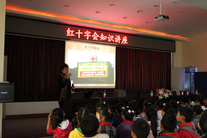 成立仪式结束之后,顾秘书长图文并茂地做了红十字会知识讲座,让同学们对红十字会有了更深地了解。