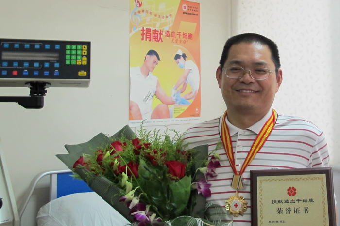 7月19日上午,在苏大附一院血液科造血干细胞采集室,面对前来采访的新闻记者,躺在采集床上的捐髓志愿者朱兴根始终保持着一副稳重、淡定的神情,对着镜头,说的最多的就是这样一句话,“当帮助不再是同情,而是出于本能时,这个世界才真正温暖起来”。