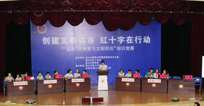 6月29日,昆山市红十字会联合市文明办、市教育局在昆山市青少年宫举办了“‘安利杯’博爱与文明同在”知识竞赛。来自全市22所学校的66名选手参加了此次竞赛。