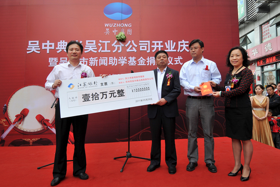 近日,吴中典当吴江分公司向吴江市红十字会捐款10万元,用于“新闻助学”项目,该项目将用于资助贫困大学新生,帮助他们顺利走进高等学府,学有成就。此次捐赠活动也拉开了吴江市红十字会2011爱心助学活动序幕。