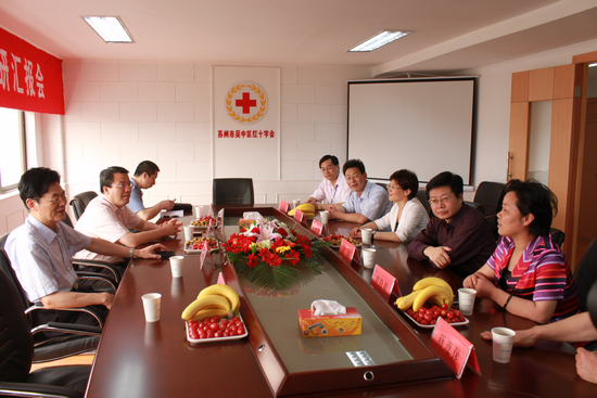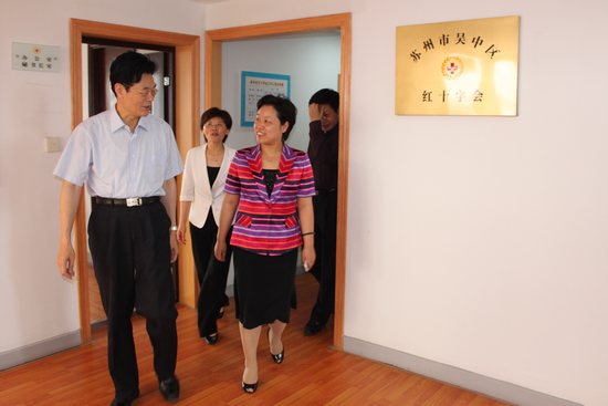 6月2日,江苏省红十字会吴瑞林会长率省红十字会党组书记、副会长李新平,事业发展部副部长郝宁,办公室主任科员聂城一行来苏调研红十字会工作。首先在吴中区调研区红十字会理顺管理体制情况,苏州市政府副秘书长张曙,市红十字会常务副会长严晓凤陪同调研。吴中区政府副区长、区红十字会会长周晓敏做了工作汇报。