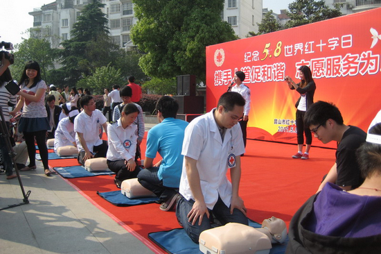当天的活动中,市区多家公立医院的医生还现场为市民讲解、演示了心肺复苏的整个过程,150多位红十字志愿者在烈日下义务帮忙宣传。据悉,整个5.8活动周期间,昆山还将逐步展开助学、跟四川广济学生结对书信等8项活动。