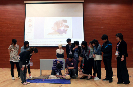 仪式结束后,区红十字会现场进行了新会员救护培训。