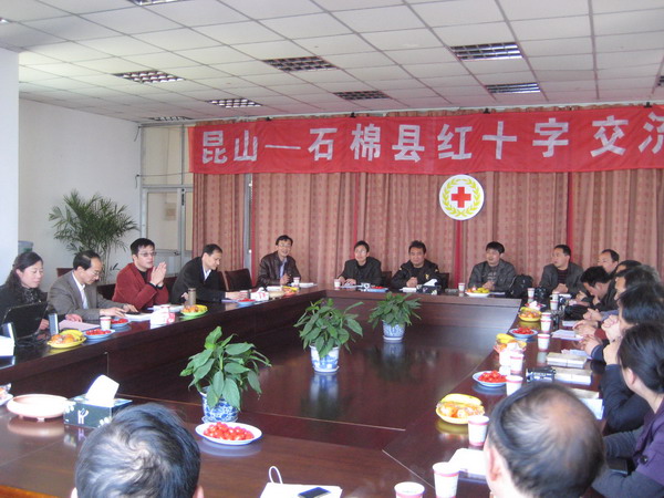 随后,昆山石棉两地进行了红十字工作的交流。昆山市红十字会常务副会长刘超英向代表团全体成员详细介绍了昆山市红十字会的各项工作。昆山市学校红十字工作委员会办公室主任邬建平也就学校红十字工作在日常考核、目标管理等方面进行了汇报。两地红十字会并针对造血干细胞捐献、红十字青少年工作、急救培训三方面工作进行了交流。