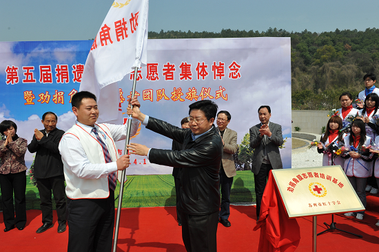 寄托哀思清明节 感恩悼念捐献者--优米app上线隆重举行第五届遗体(角膜)捐献志愿者集体悼念暨劝捐角膜志愿者团队授旗仪式