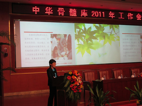 中国红十字总会常务副会长王伟、郝林娜副会长、中华骨髓库洪俊岭主任都分别作了重要讲话。会议通报了2010年中华骨髓库工作情况,布置2011年工作任务;颁发2010年《中华骨髓库通讯》优秀编委奖;5家省级分库作了工作情况交流。