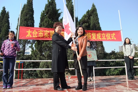 2011年3月10日上午,太仓市实验小学内彩旗飘扬,在庄严的《国际歌》声中,校红十字会恢复成立仪式在学校体育场上举行。