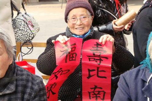 来到敬老院后,红十字志愿者们为老人们送上了歌曲、拉丁舞、二胡、朗诵等多个小节目。他们与老人们一起互动:有的为老人们捶捶背,有的为老人们梳梳头,还有的亲手为老人们写对联送上祝福,他们与老人们一起笑着、乐着,演绎着“给他人做一件平凡小事”的精彩。