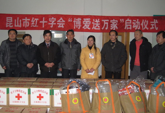 1月19日下午,昆山市红十字会在卫生局大楼正式启动“博爱送万家”慰问活动,昆山市红十字会常务副会长刘超英及各乡镇红十字会秘书长共同参加了启动仪式。