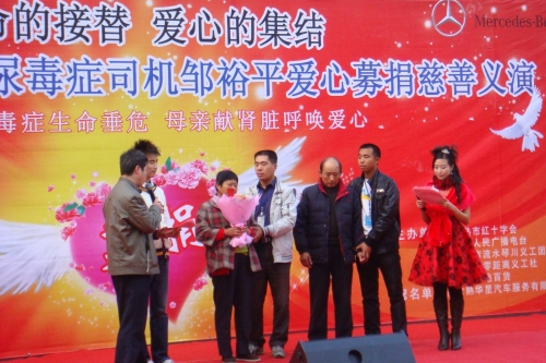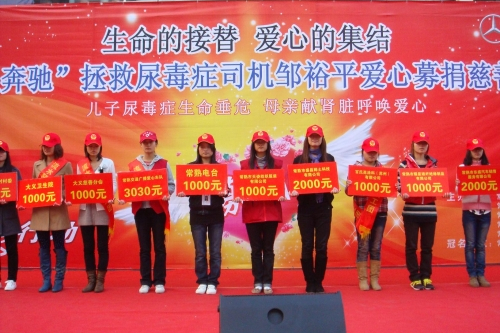 10月30日下午,“生命的接替爱心的集结——‘华星奔驰’拯救尿毒症司机邹裕平募捐慈善义演”在常熟方塔东街举行,当天共募集善款近10万元。