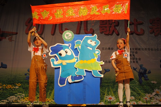 舞台上,孩子们用纯真稚嫩的嗓音表达着他们对上海世博会召开的欢喜之情,用积极向上的精神状态争做关爱他人、乐于助人的爱心宝宝。这是我市幼儿综合素质教育工作的重要一笔。