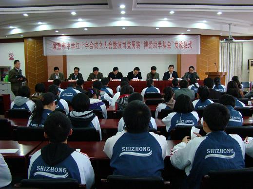 4月14日,常熟市中学红十字会成立大会暨波司登男装“博爱助学基金”发放仪式在市中图书馆举行。